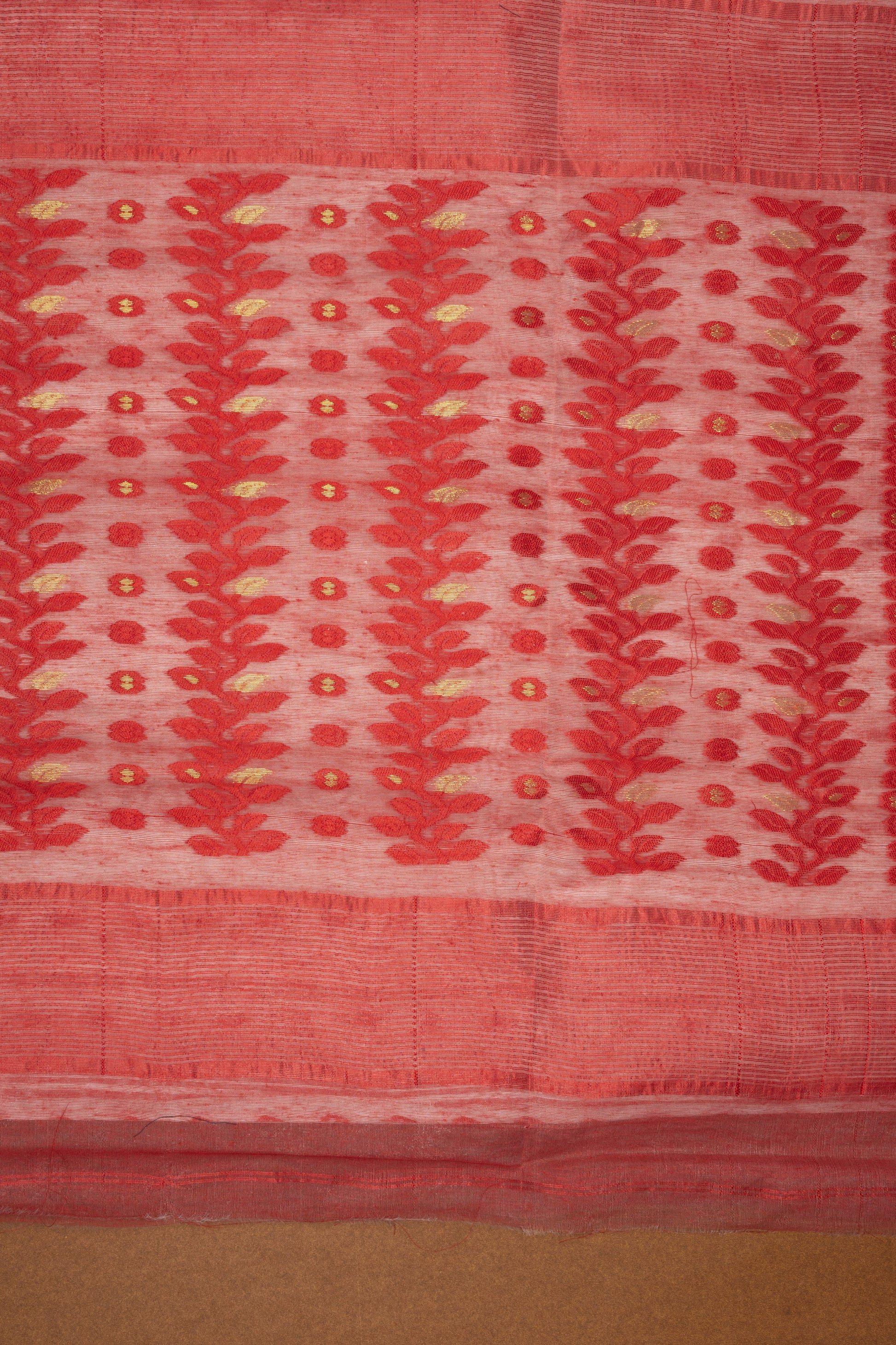 very motif is the result of supplementary weft weaving, where artisans interlace threads with the base yarn, without any mechanical aid. It is said that a single Jamdani saree can take anywhere from 120 to 200 hours, depending on intricacy, and this diagonal composition demands even greater precision.