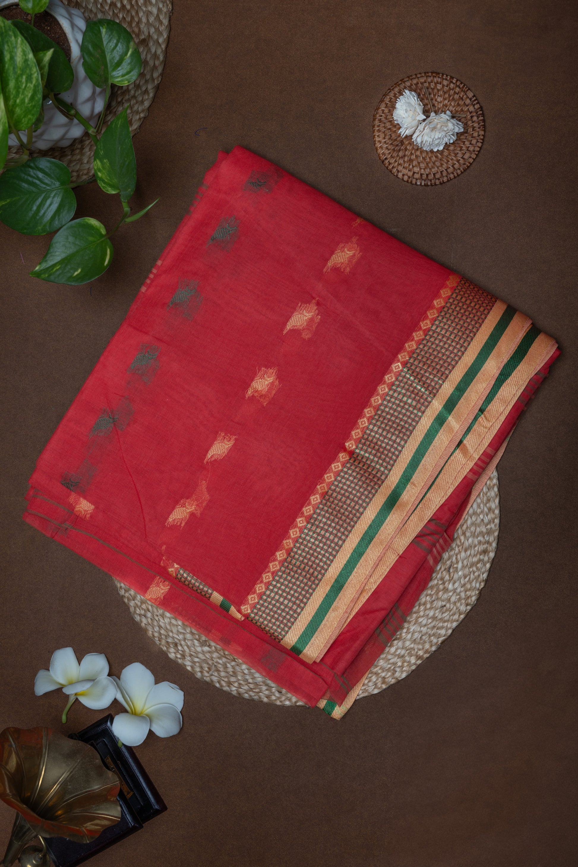 Lightweight yet richly detailed, this saree is perfect for the warm climate and pairs beautifully with traditional or contemporary blouses. Elevate your wardrobe with a piece of cultural heritage that blends comfort, style, and artisanal artistry seamlessly.