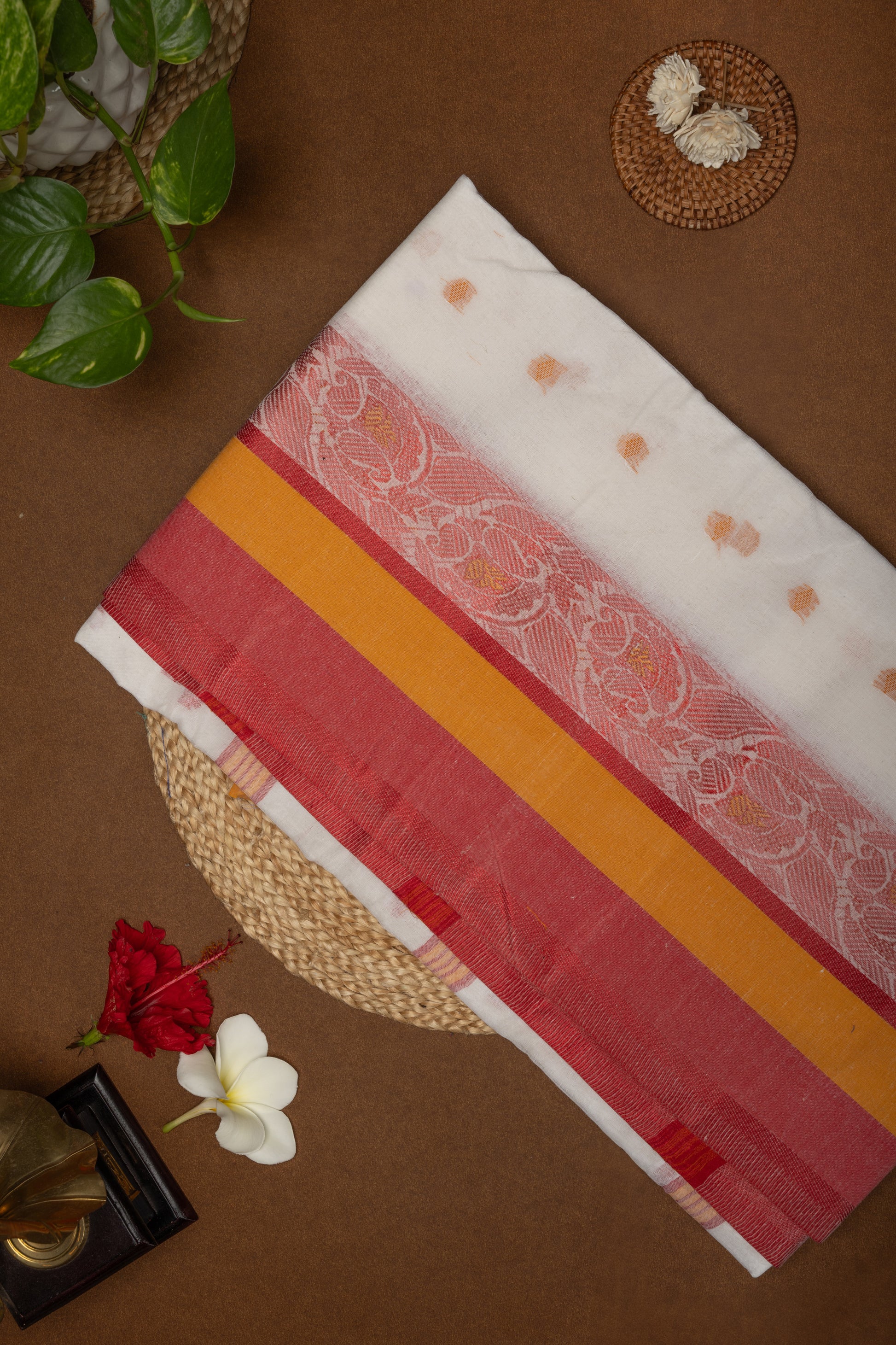 Lightweight yet richly detailed, this saree is perfect for the warm climate and pairs beautifully with traditional or contemporary blouses. Elevate your wardrobe with a piece of cultural heritage that blends comfort, style, and artisanal artistry seamlessly.