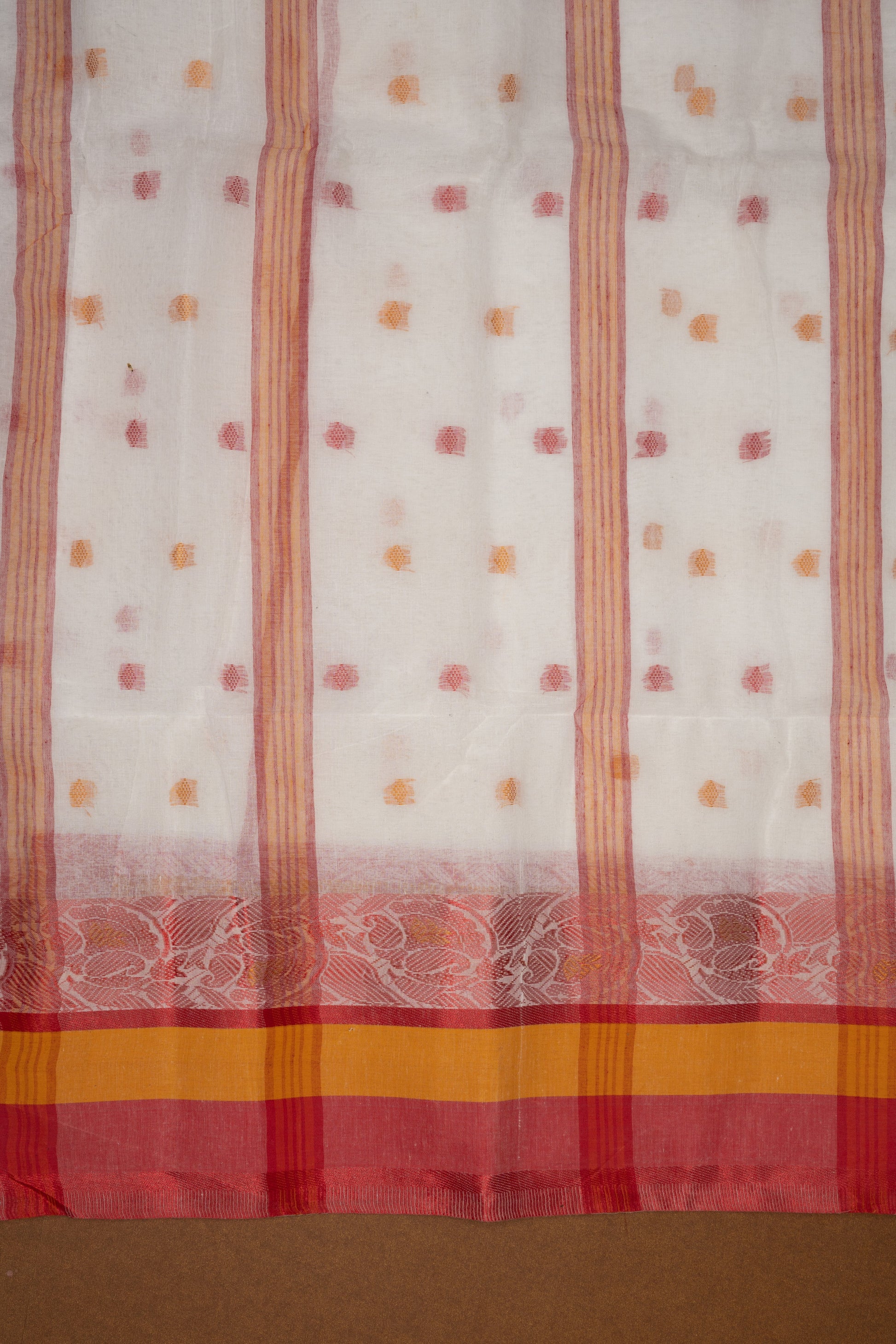Add the charm of authentic Bengali craftsmanship to your collection with this stunning Tangail Tant saree. Shop now and celebrate tradition with style!