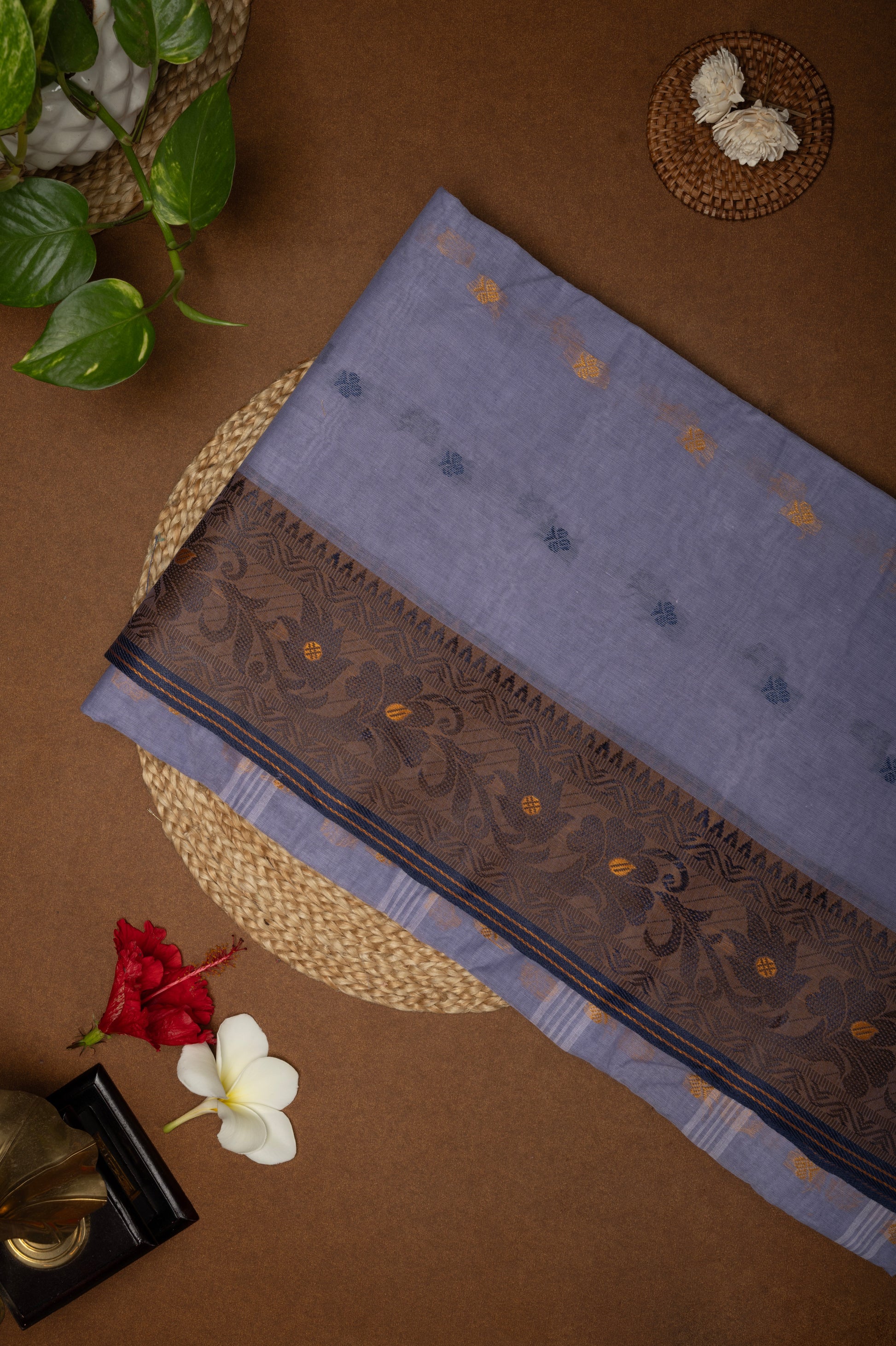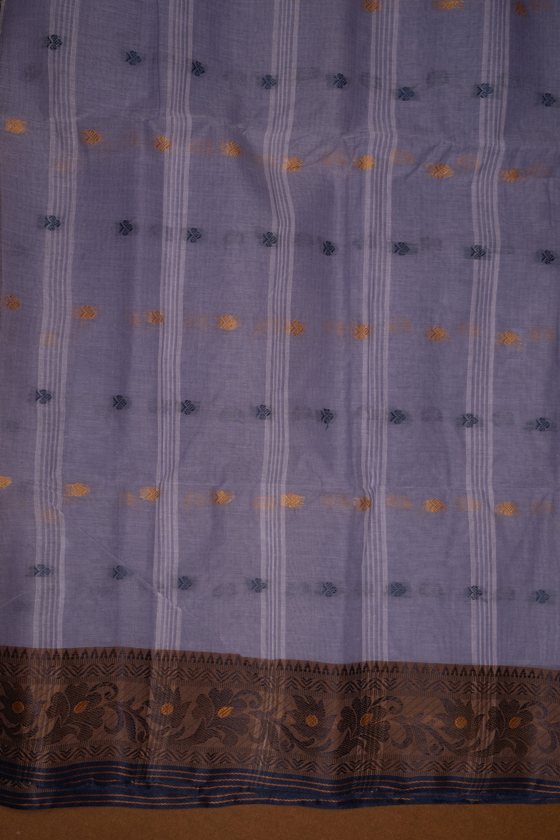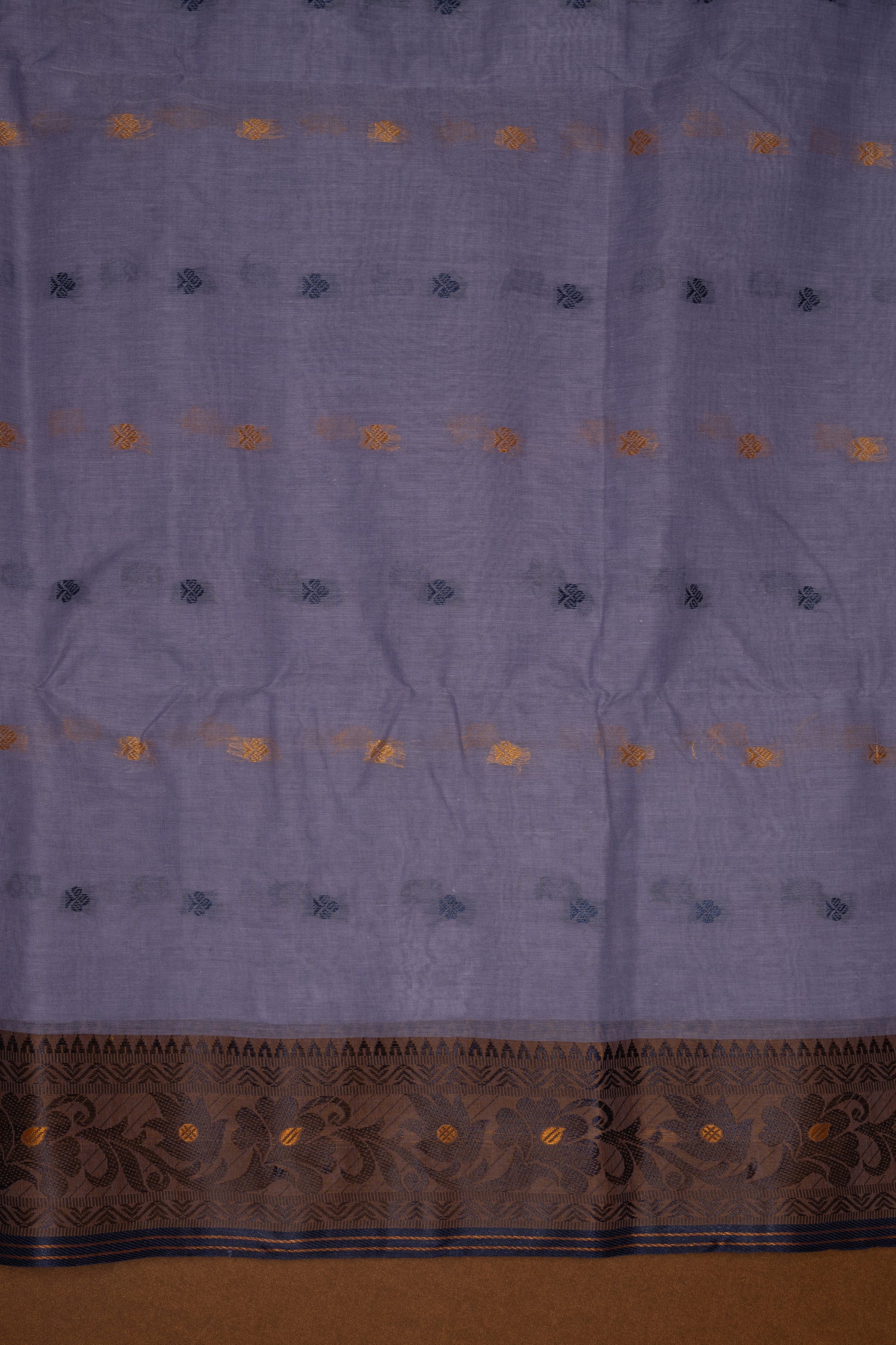 Manjaree : Mauve-Lavender Bengal Cotton Saree with Intricate Brown Floral Border