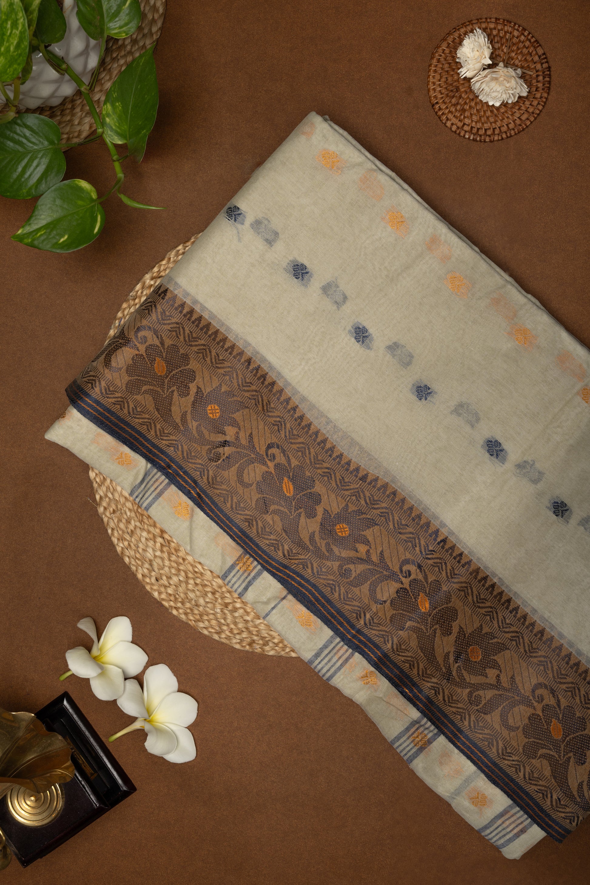 Experience the timeless elegance of the Tangail Tant saree, handwoven to perfection with the finest cotton for unmatched comfort and breathability. This classic saree features exquisite ornate floral and paisley borders, intricately crafted by skilled artisans using traditional handloom techniques passed down through generations.