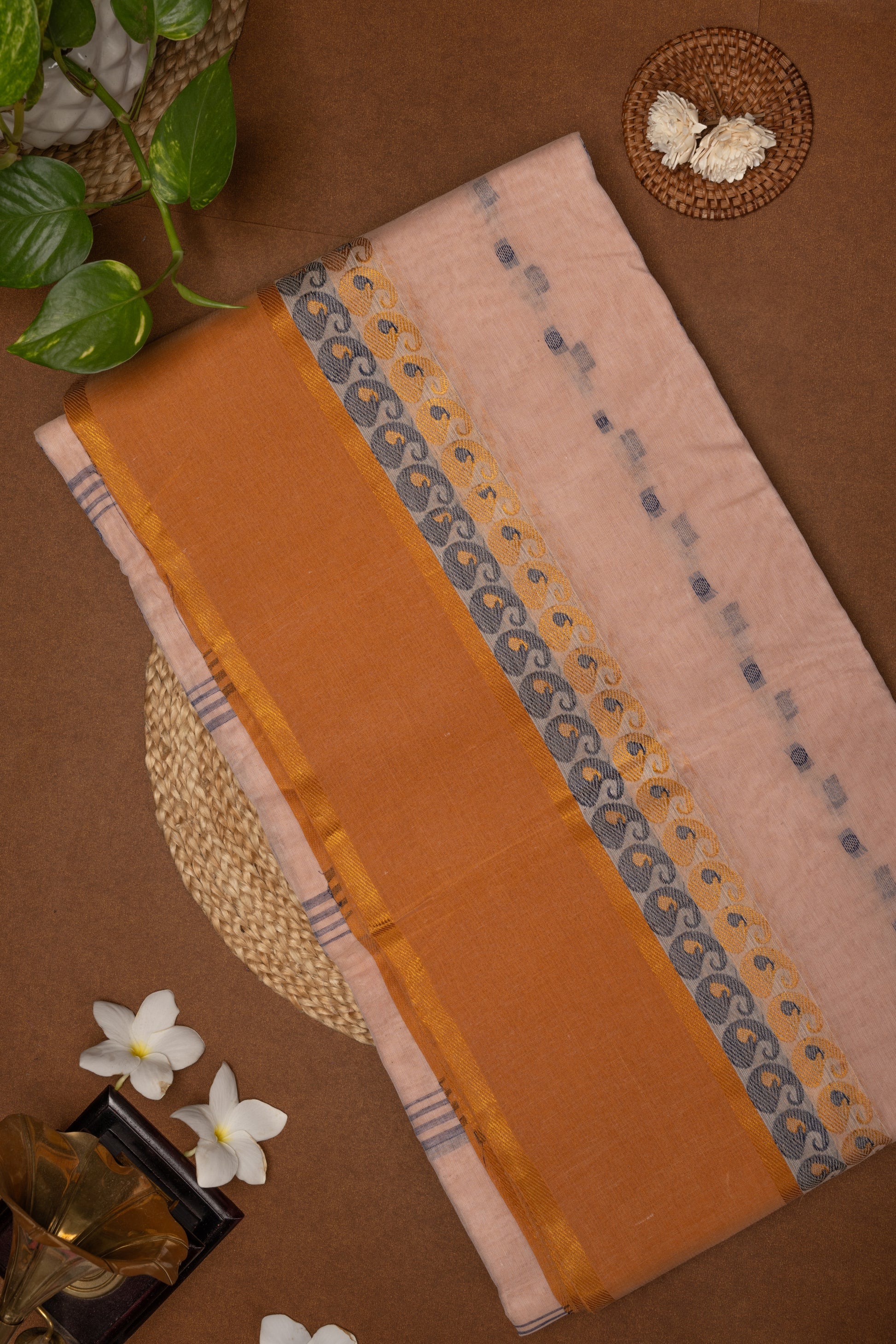 Sugandhika - Blush Pink Bengal Cotton Saree with Mustard Yellow & Grey Woven Border
