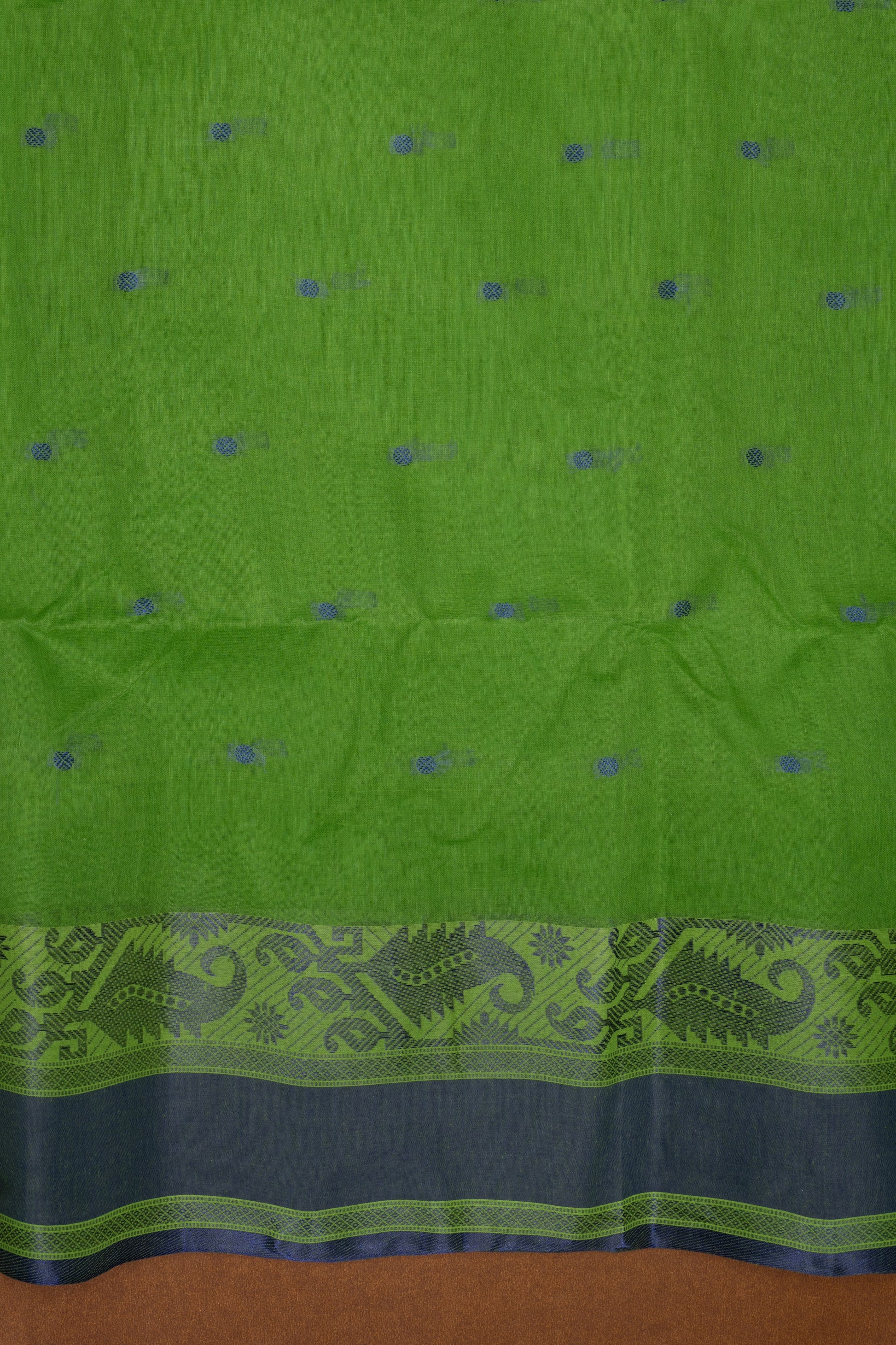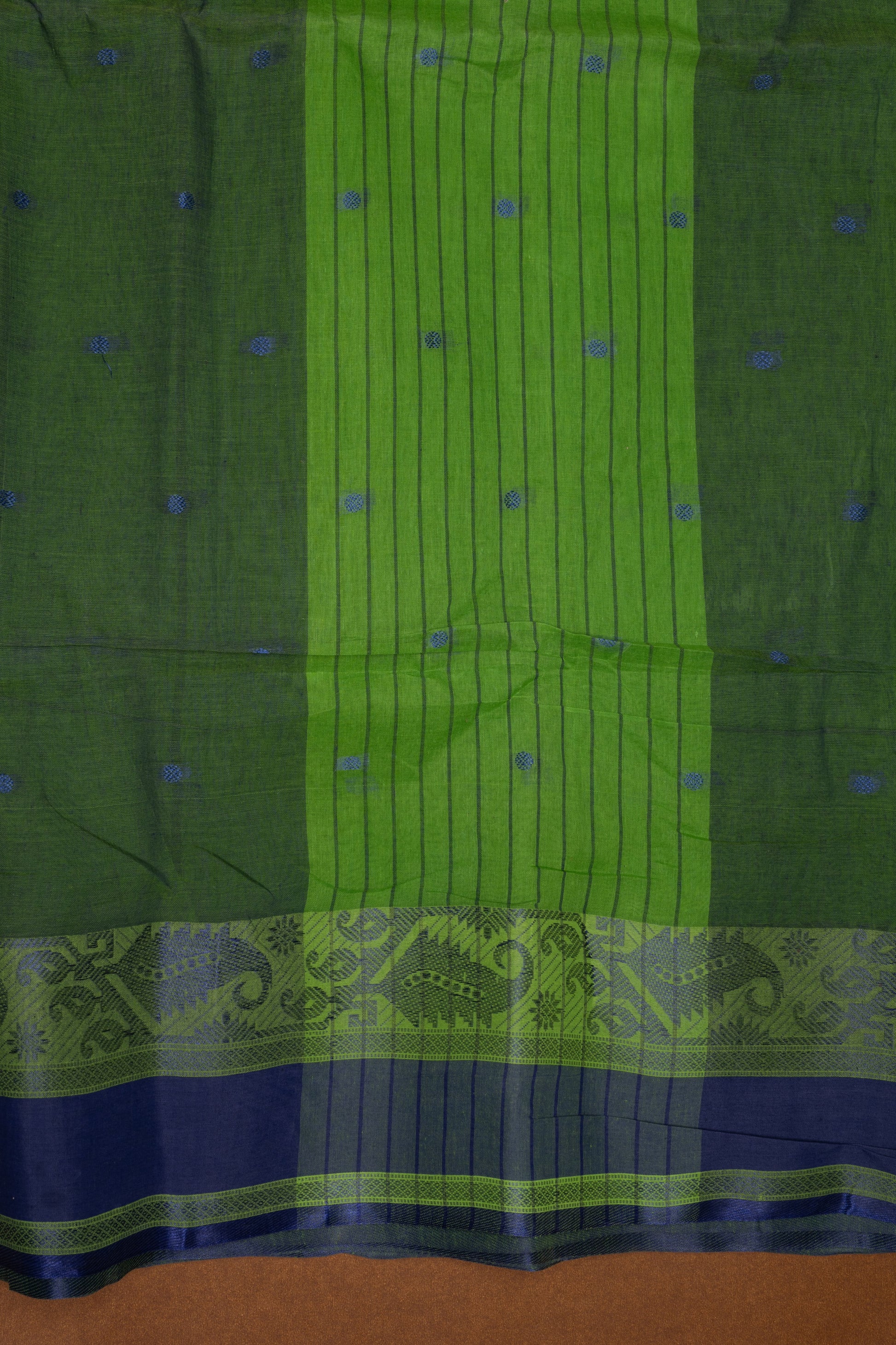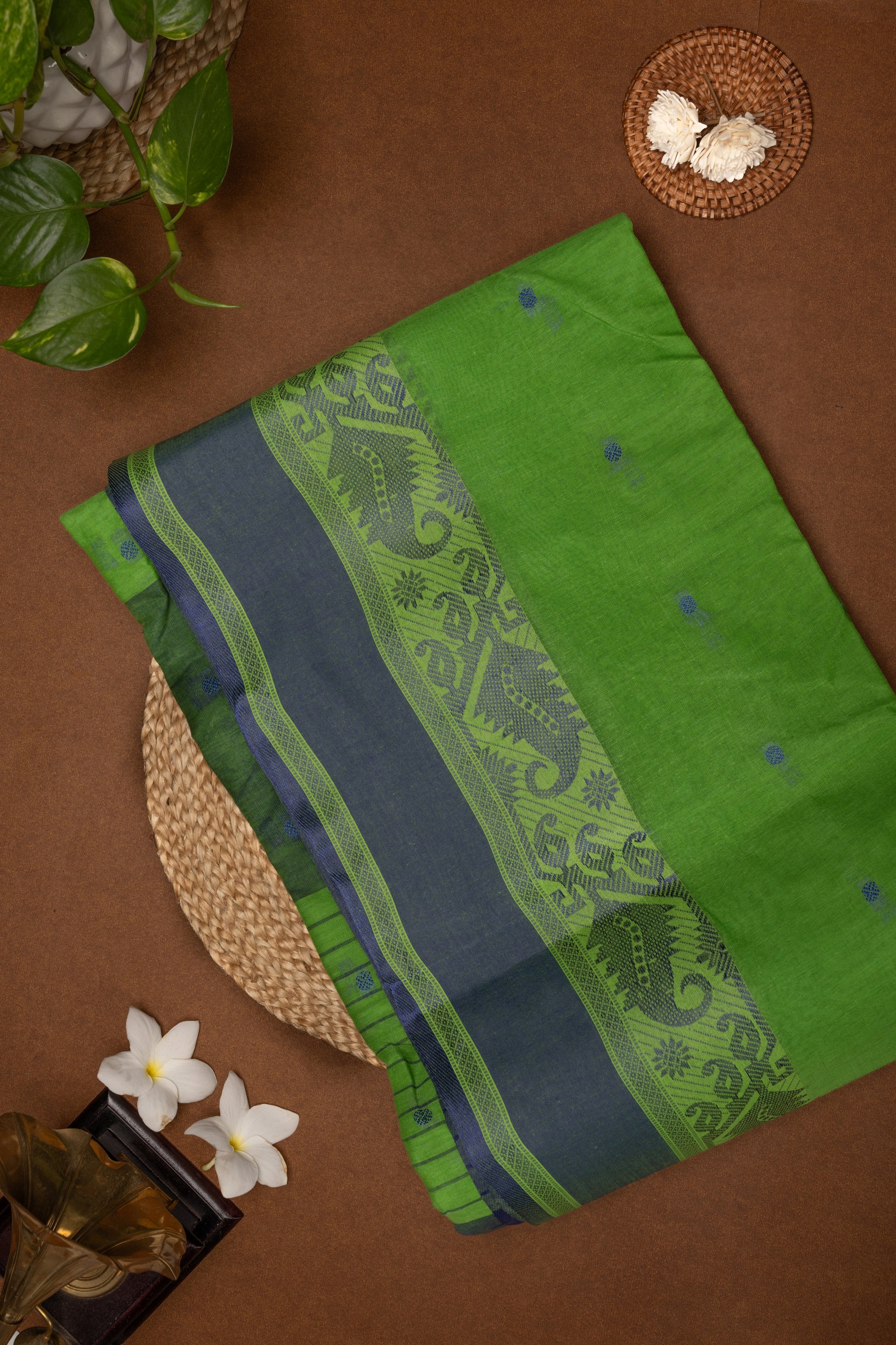 Haripriya - Leaf Green Bengal Cotton Saree with Royal Blue Dhakai Border