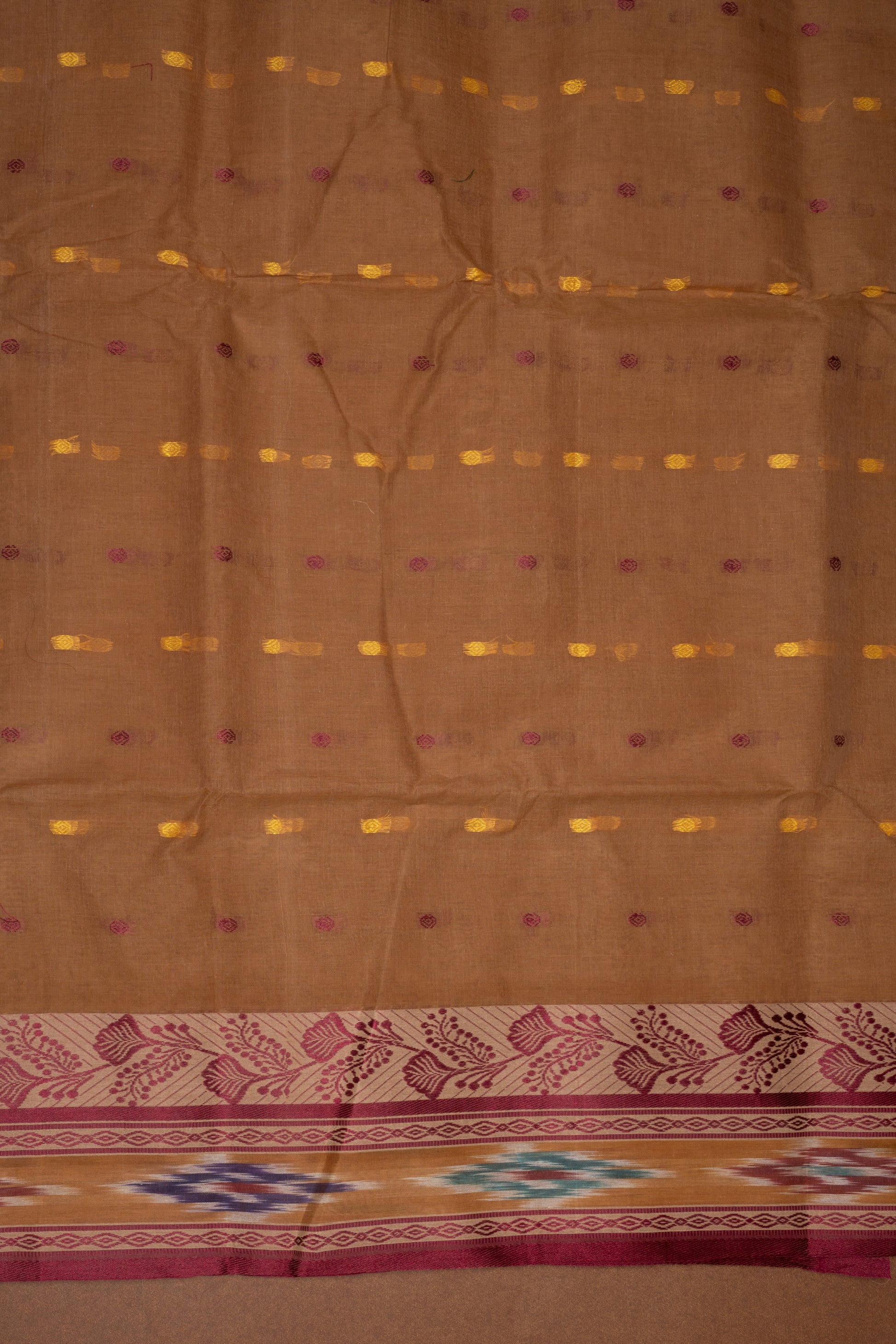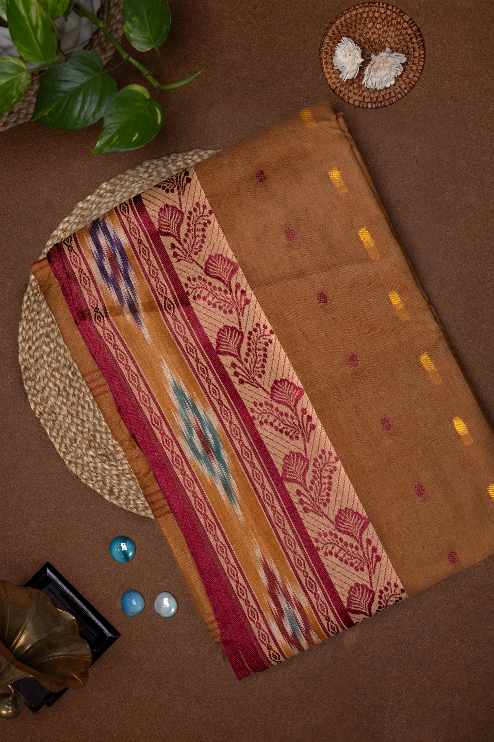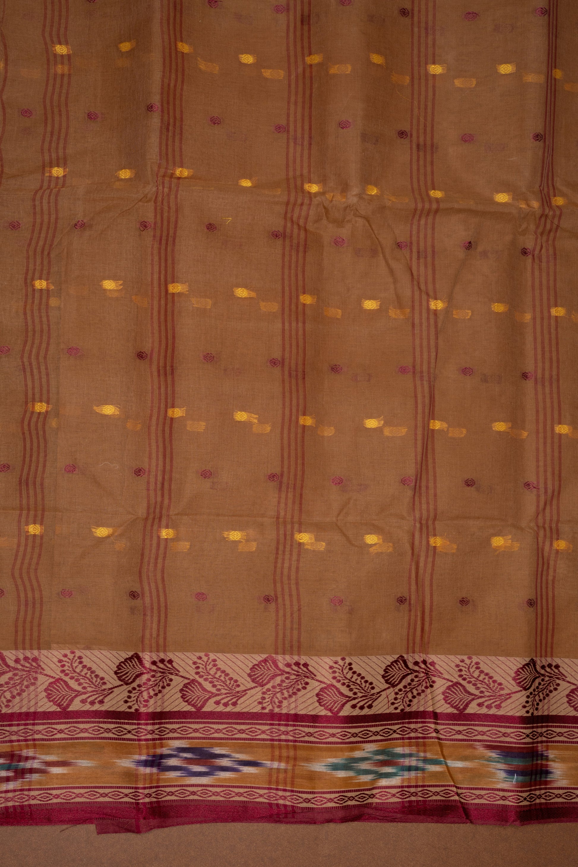 Gauraangi - Peanut Brown Bengal Cotton Saree with Maroon woven Ikkat Border