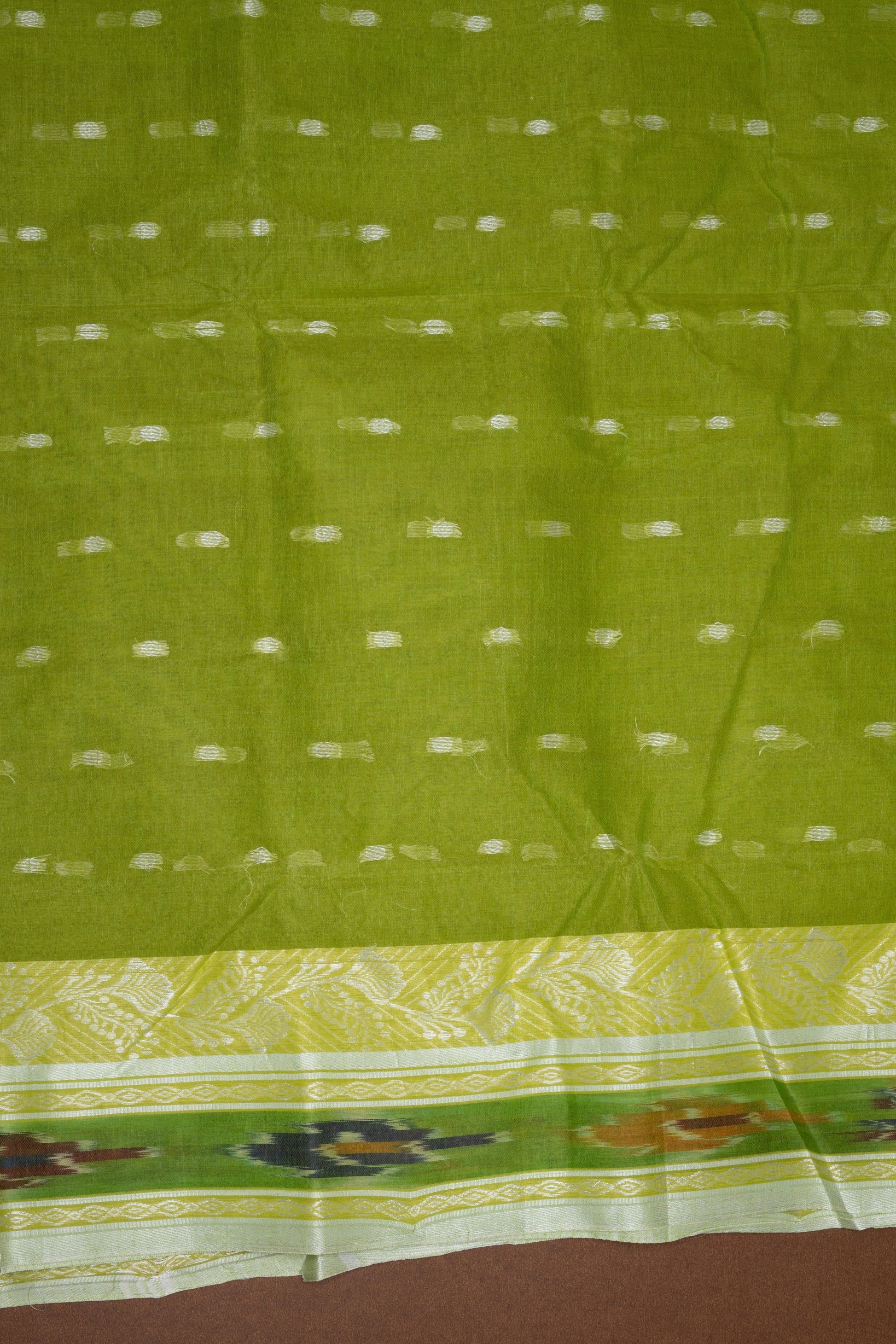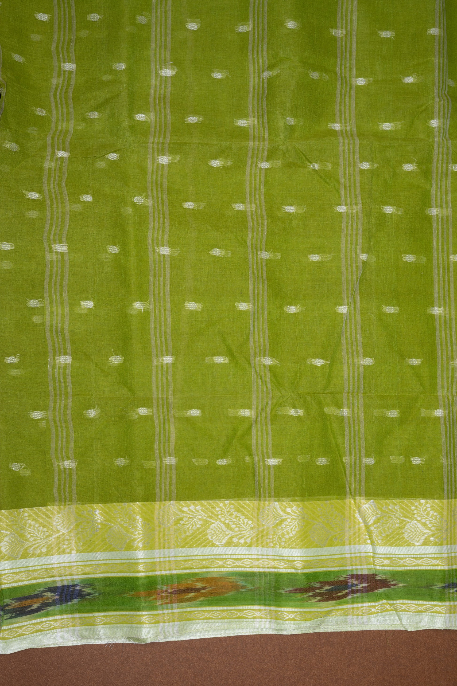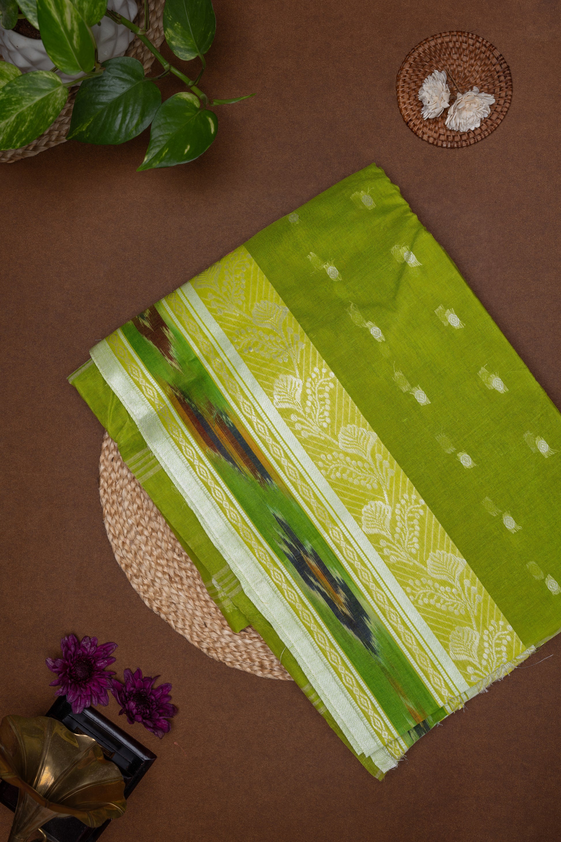 Vanita - Parrot Green & Ivory Bengal Cotton Saree with woven Ikkat border