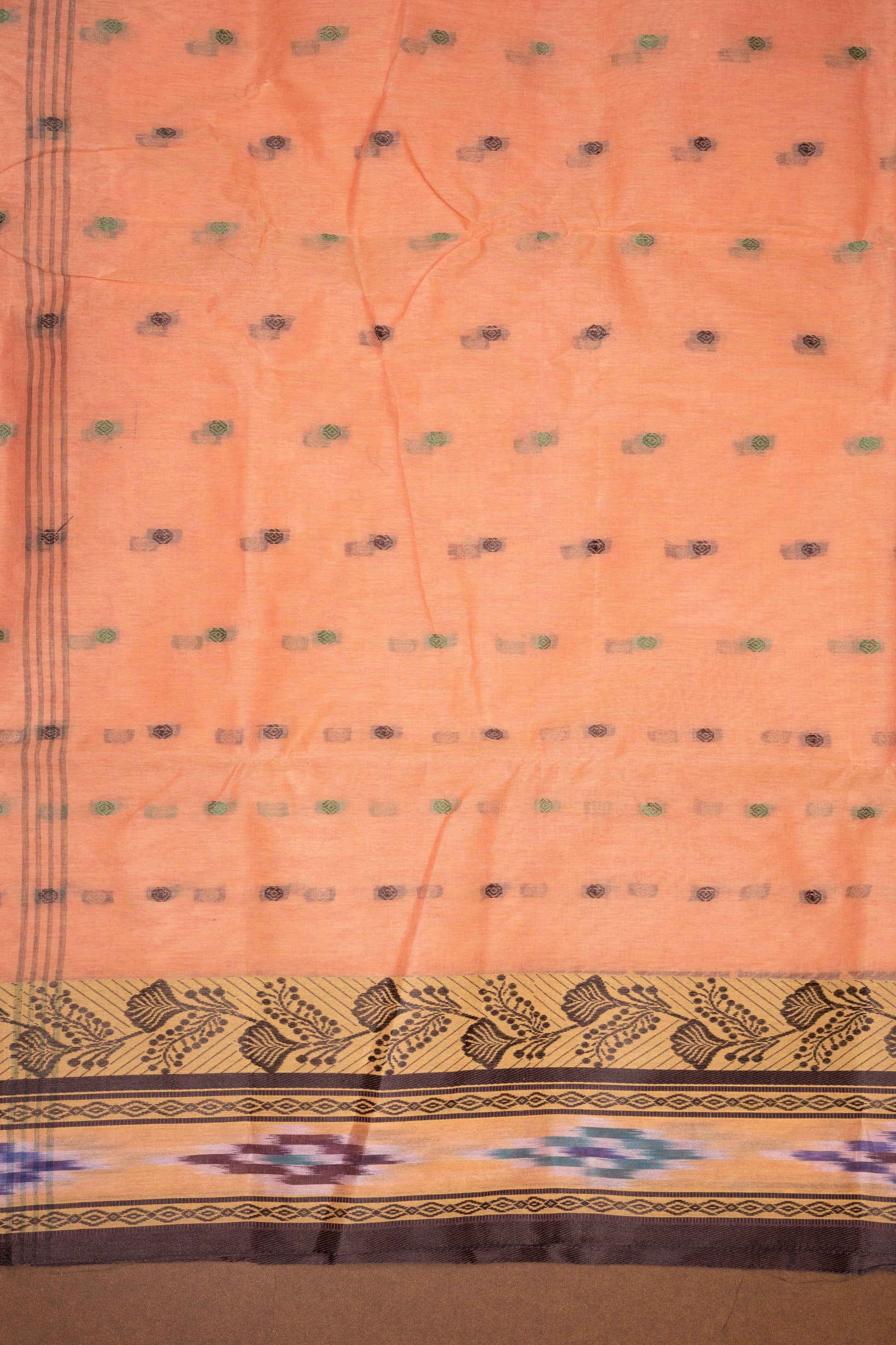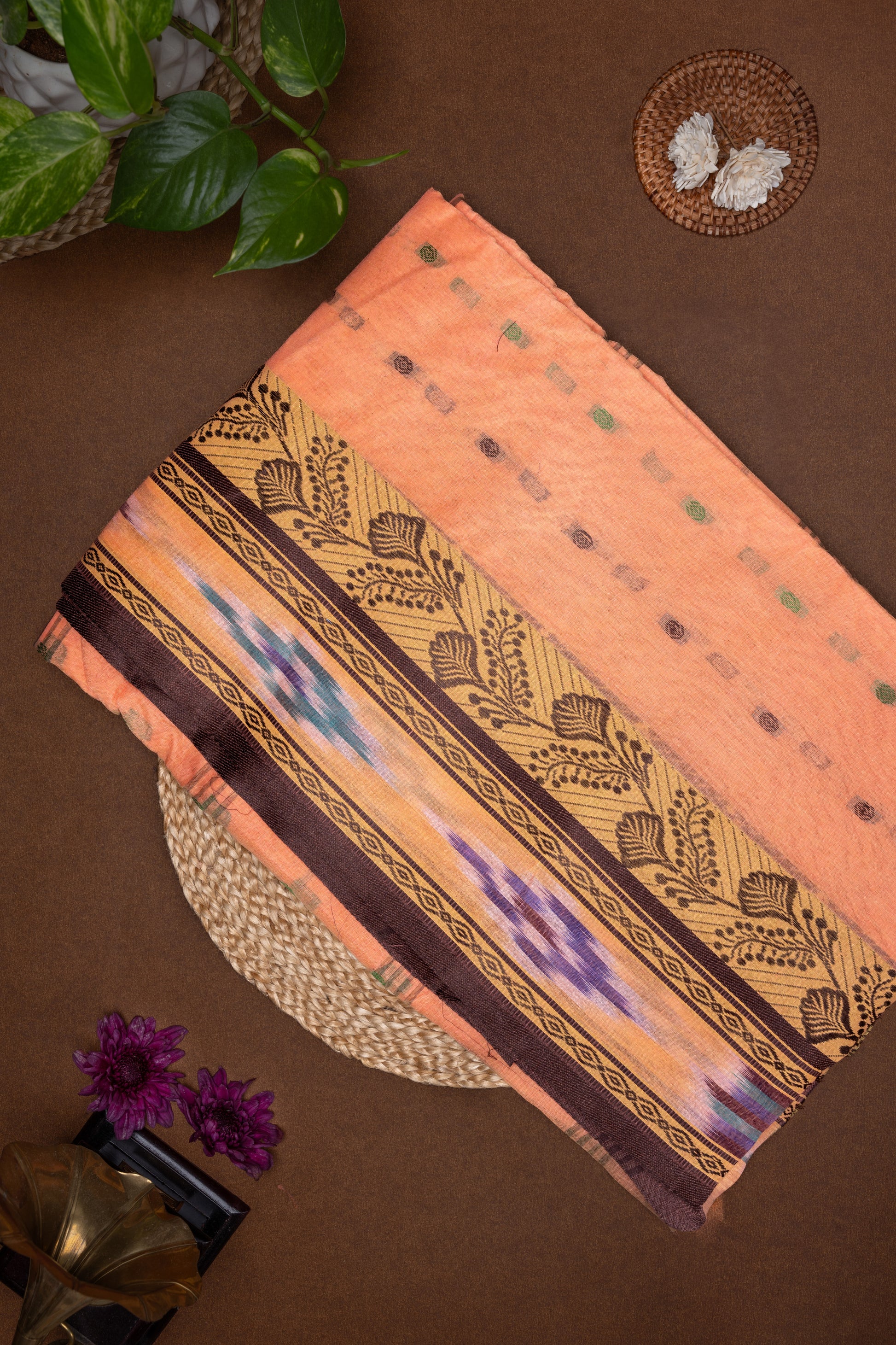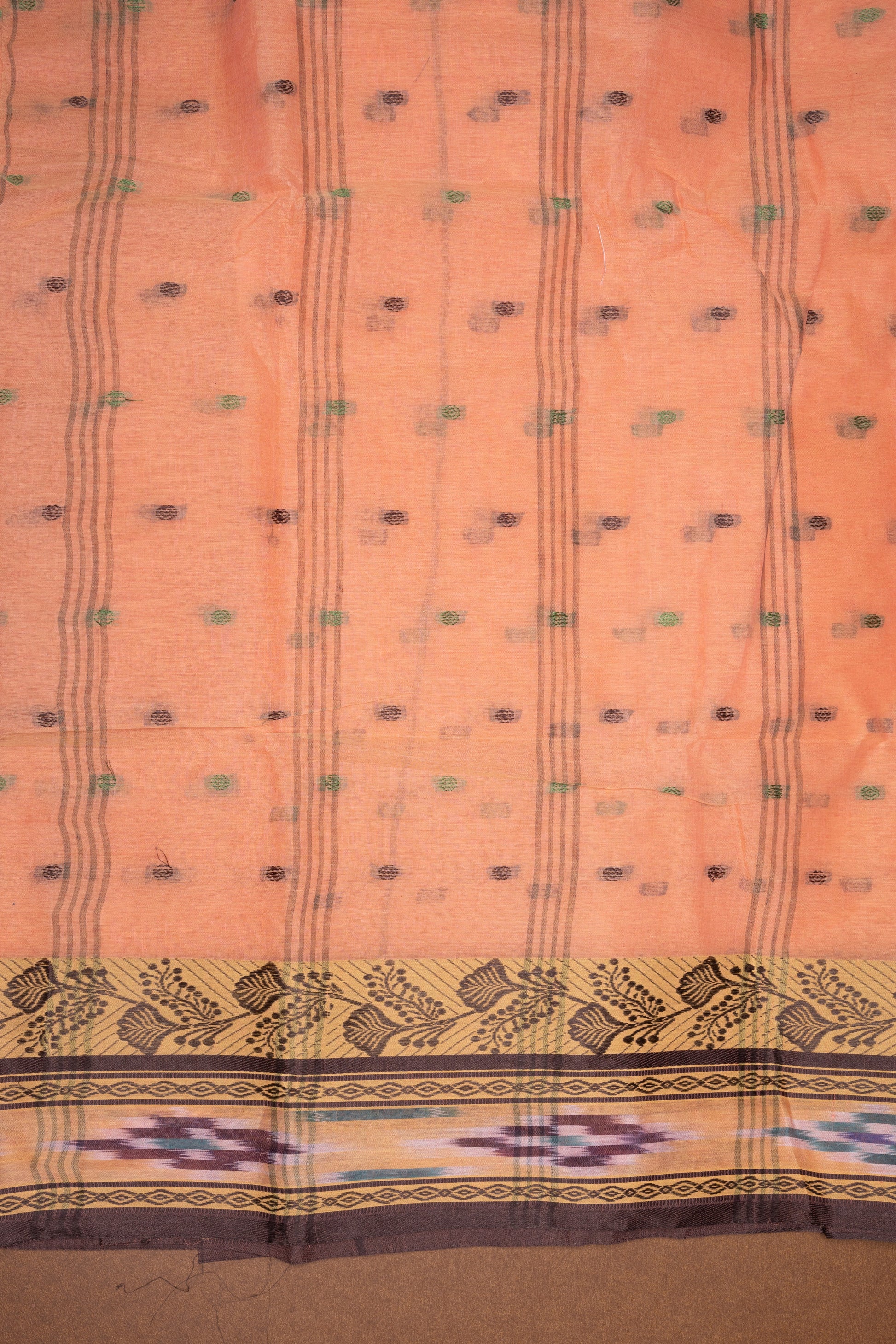 Dharitri - Peach Orange Bengal Cotton Saree with woven Ikkat border