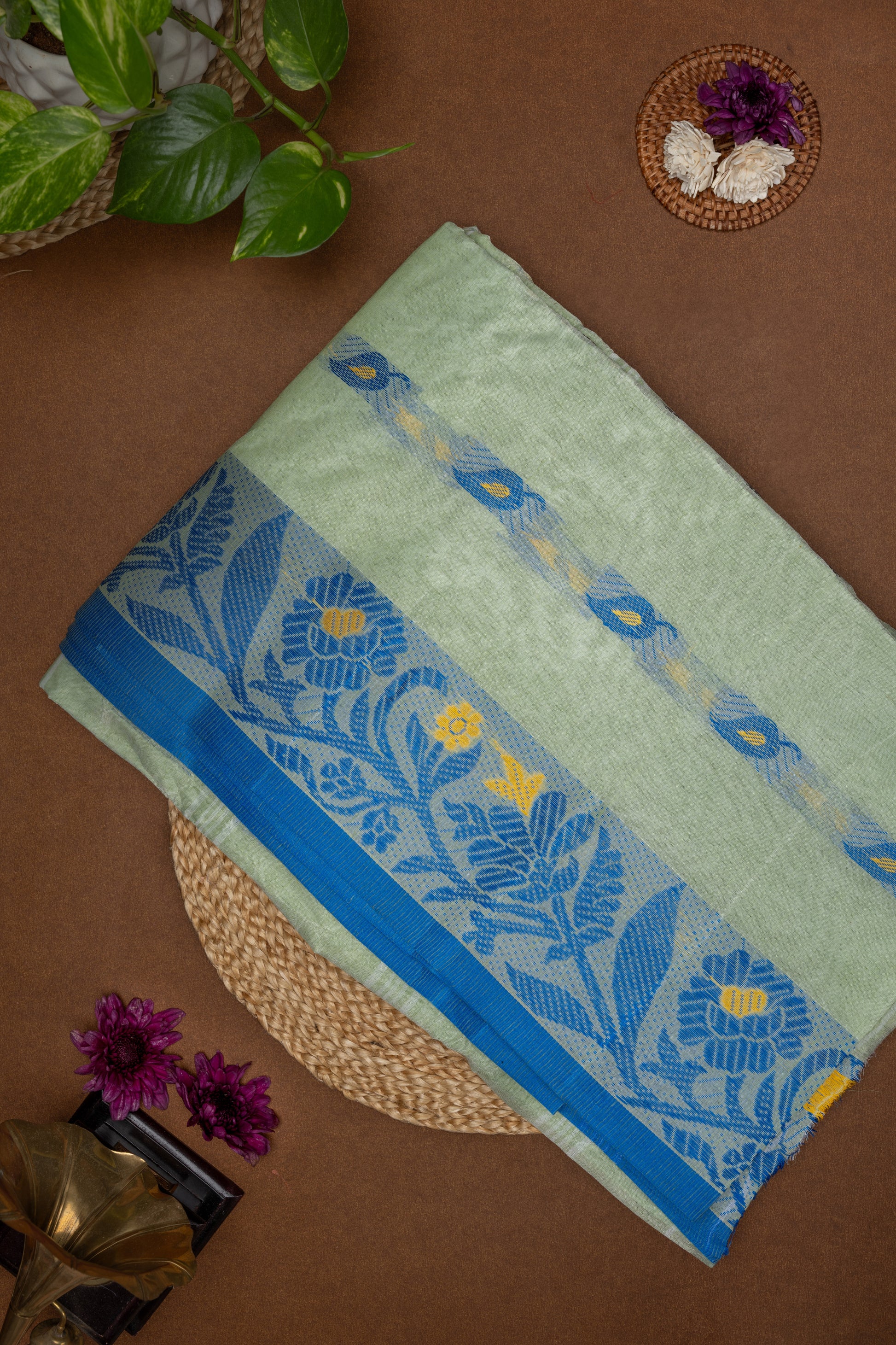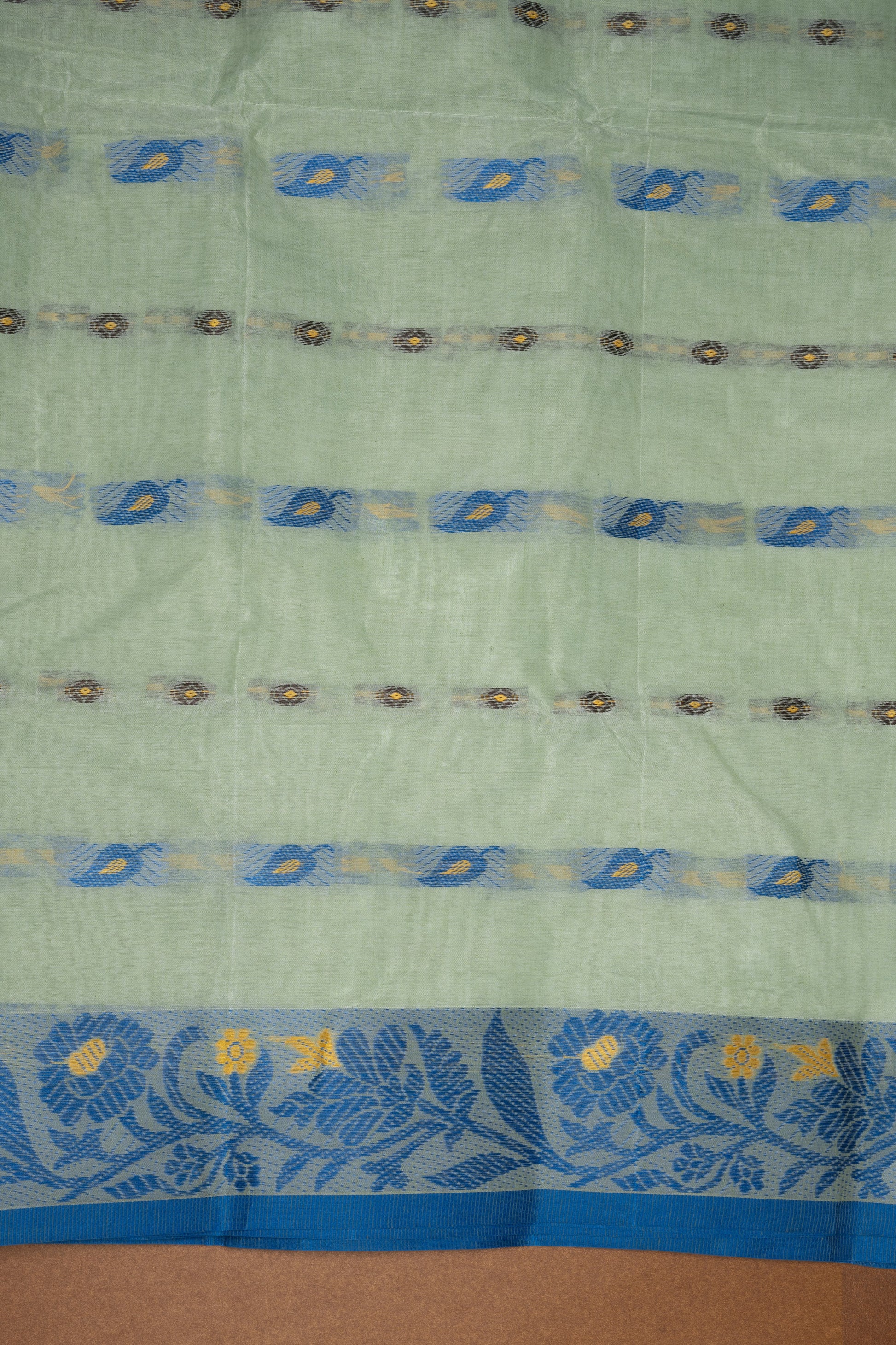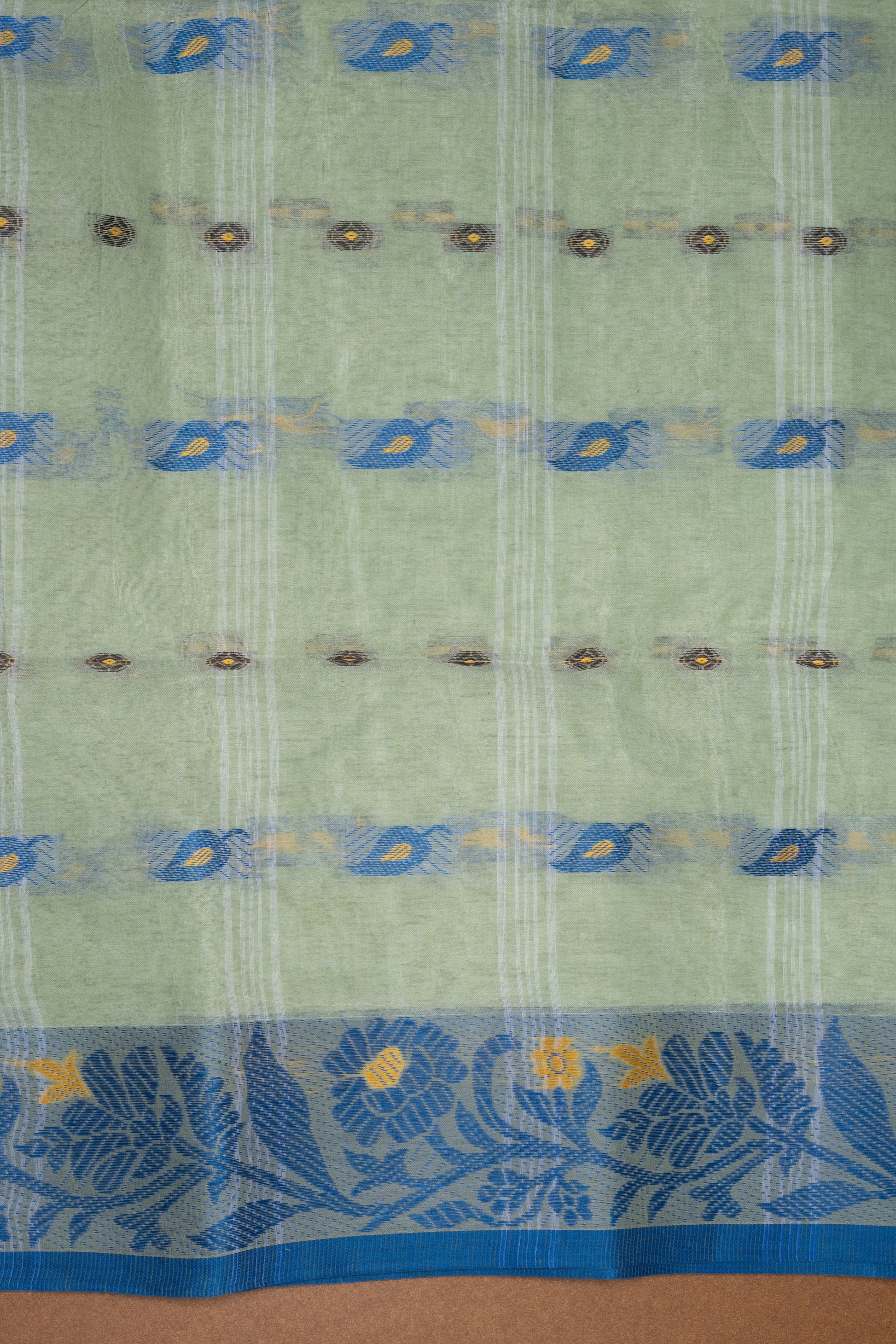 Prakriti - Sage Green Bengal Cotton Saree with Blue Floral border