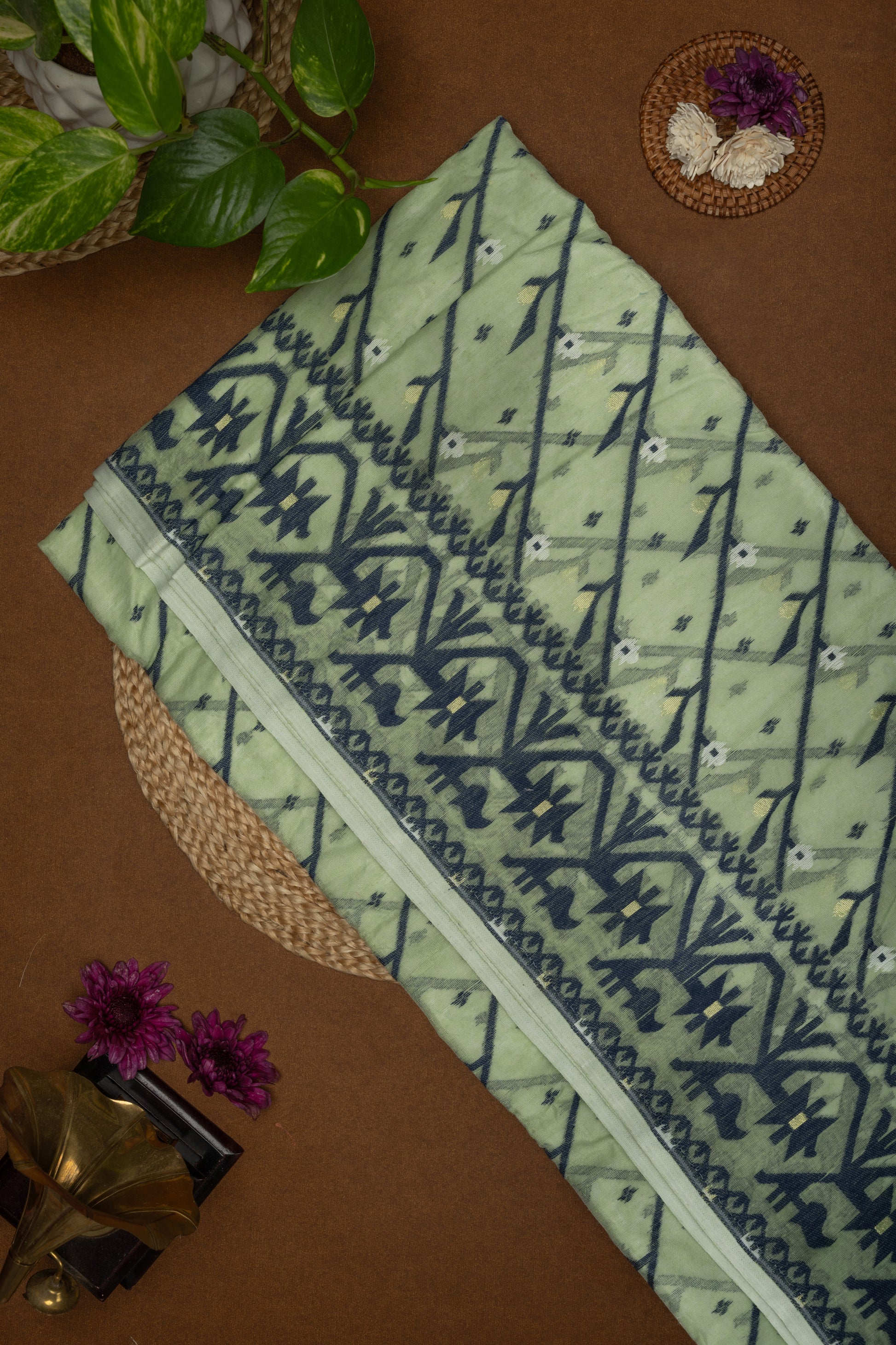 Banani : Green Jamdani Saree with Floral diagonal patterns
